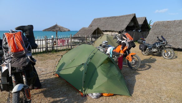 We chose this site based on a recommendation from the young manageress at Tan Swiss campsite.  We did not want to park the bikes in the middle of the city where we had been told security was not that great, but far more importantly the idea of camping on the beach next to the warm Indian Ocean was very appealing.