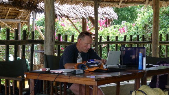 Writing this diary at Kipepeo Beach Lodge