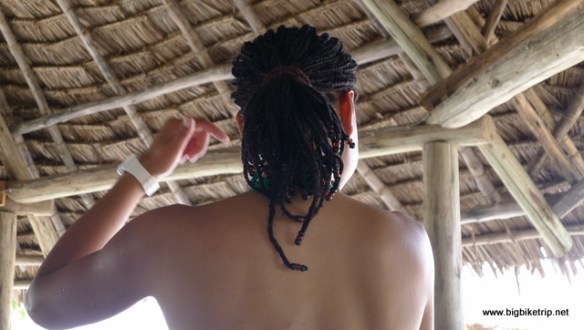 Adults on the other hand would look up, and either look aghast or smile embarrassingly at each other. Of course, I look like any other regular mzungo, pasty white, occasionally red and clearly European. Fanny on the other hand would often create an open debate as to what she is. She doesn’t look very Chinese, even to other Chinese. At this particular time in Tanga she was very tanned, rather muscular and had her hair braided with African beads. She is also quite tall and most of the time very loud and boisterous. She was also now wearing her new MC hammer trousers with the crotch by her ankles. These were given to her by Pam who suggested that Fanny’s de rigeur mini skirt was inappropriate for the local scene, especially now it was Ramadan and so she had made her some Trousers in KTM orange fashioned out of a sarong wrap. Fanny actually really wanted a local sarong fastened the traditional way, however with the motorcycle riding and Fanny’s usual hooligan behaviour it would not remain modestly fastened around her “not to be seens” for very long and so the MC hammers became a staple item in her limited wardrobe.