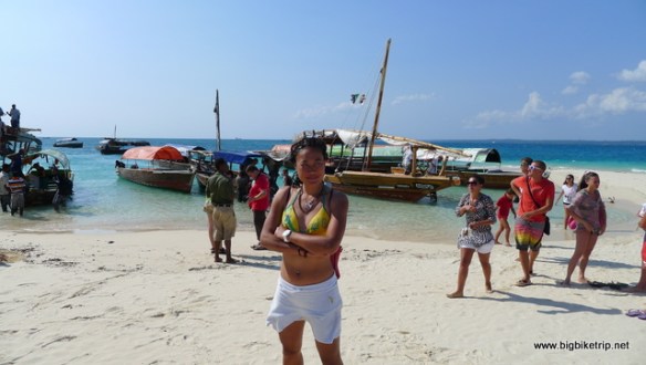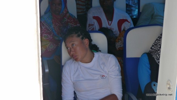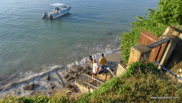 We stayed at another hotel that night as we could not face the nocturnal battle with millions of bugs and other creatures and the next day took the early ferry back to Dar Es Salaam, getting onto the ferry first using Chinese pushing and shoving techniques well practiced in Hong Kong. Being the first to board we were then able to relax in huge bean bags on the open deck. Fanny slept the whole way which was probably best as she was dreading the journey and some local guys, doing their Ramadan good turn of the day, gave us a ride back to Kipepeo Beach where we were pleased to find our KTMs in the same state we left them.