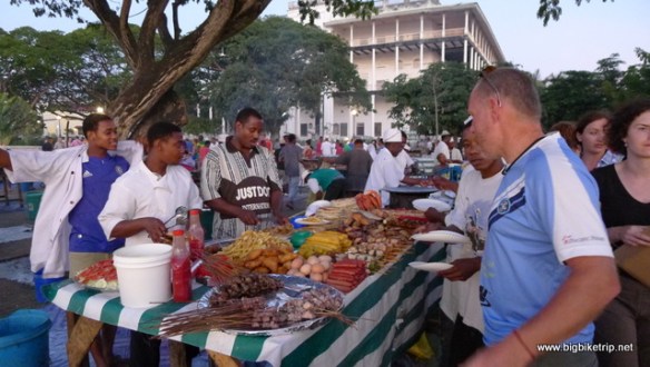 Zanzibar market place and food stalls… a bit expensive for us.