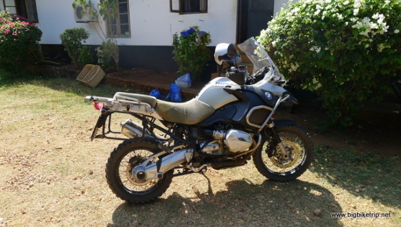 Eric’s BMW 1200 GS outside his home in Tanga