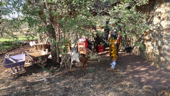 We signed up with some others for the barbeque goat which was being offered at the camp and not long after ran into our dinner tied up behind the kitchen looking understandably nervous. I am a meat eater and so is Fanny and so as unnerving eyeing your prey in the eyes actually is, it is clearly hypocritical to be squeamish when your meat is presented to you with a pulse, rather than in cellophane wrapping at Tescos. Our resolve and nerve was further tested when we ran into, well let’s call him, “Dinner” having his throat cut, blood drained and innards removed.
