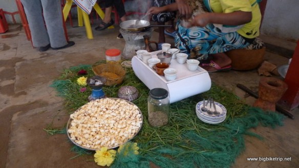 Coffee ceremony with popcorn. This was very typical and the set up always the same. As you would expect in Ethiopia, the coffee was excellent. As it was also in Zambia, Kenya and Tanzania, but in Ethiopia it has a special place in everyone’s lives.