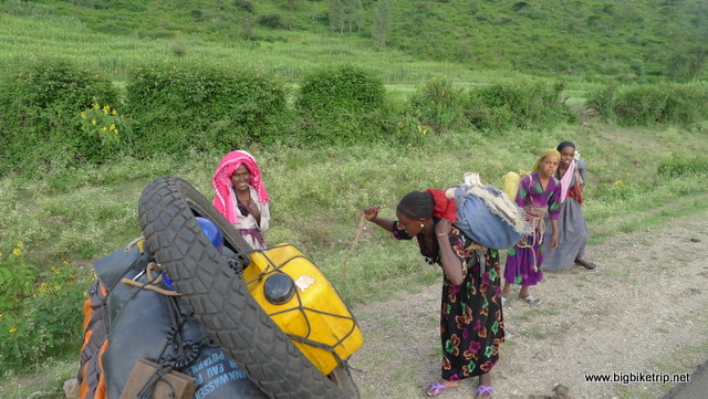 I decided to do some bike repairs at LakeTana and whilst attempting to straighten the pannier frames by leaning Fanny’s bike against a rock the bike suddenly slipped and fell on top of me and I couldn’t get it off. Fanny, the world’s expert on lifting up KTM 990 Adventures came to my rescue, lifted it back up and then recoiled shouting, ‘EEER, YUCK   ER XIN’.