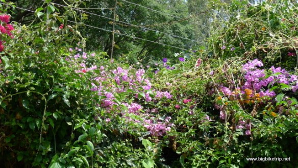 The camp site was really nice and relaxing, but our walkabout to explore the surrounding area was less so. Only about 15 minutes away was a local village.  To get there we walked through beautiful fresh countryside, resplendent in flowers and greenery and then into the town that was squalid and smelly. What a contrast.