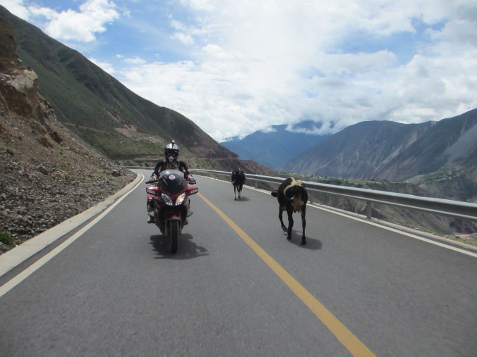 A bit like Ethiopia … we shared the road with many creatures… but none as dangerous as “Fujian peasant” in his Toyota 4×4 with Shanghai racing circuit diagram on the back window, a years supply of instant noodles on the back seat and Mrs Fujian constantly throwing rubbish out the windows into the Tibetan lakes and streams. They did it all the time.
