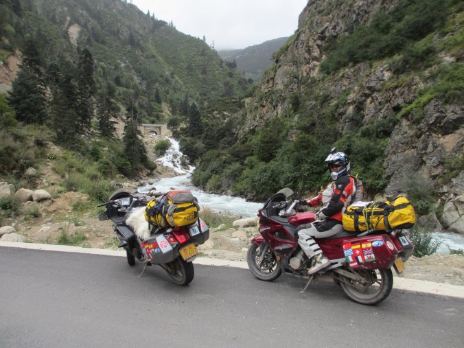 A bit muddy and rocky in places … no real problem though. Our bikes are not true adventure enduros like our KTMs, but these CF Moto 650s are very decent long distant tourers and seemed fine with everything that we came across.
