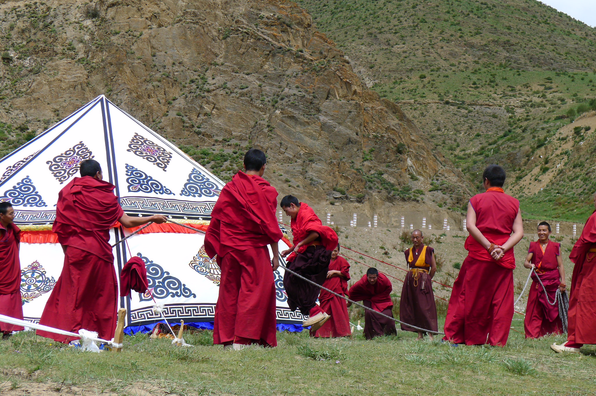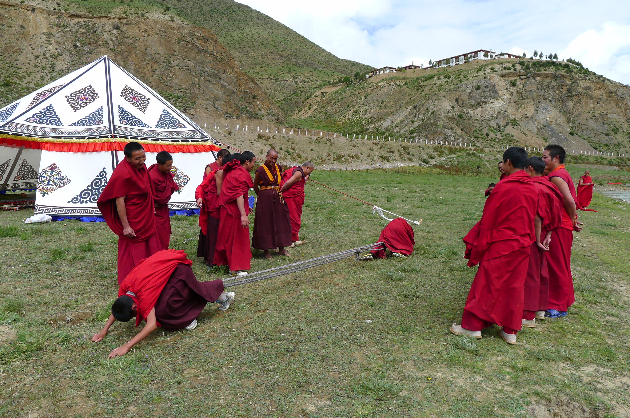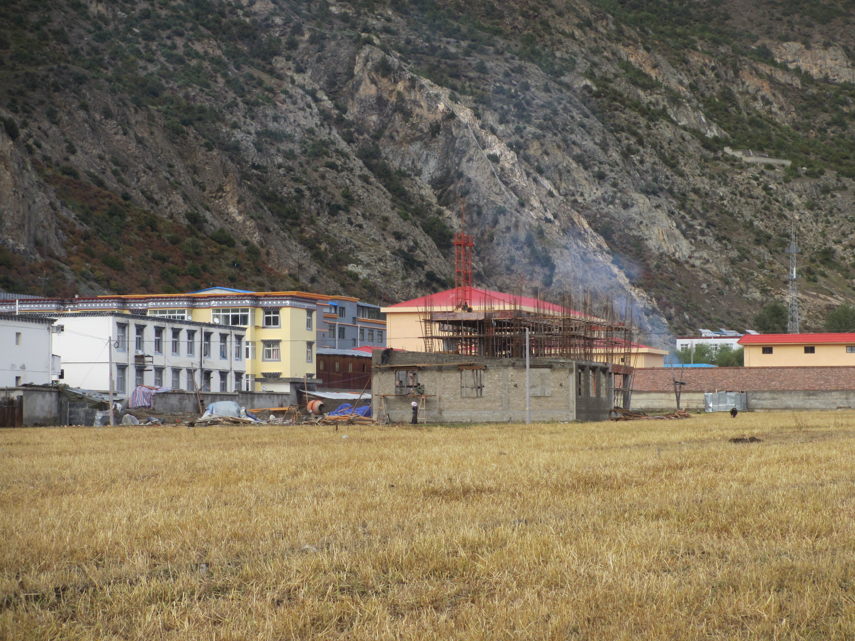 I politely declined to participate in the Lama tug of war games for obvious reasons. Right next to the temple (sen above) the Chinese authorities are building a new four story concrete police station with all the architectural splendour and creativity used in every second and third tier cities we saw across China… i.e. zero. A slightly disturbing sight to my mind, but the explanation given by the omnipresent plain clothes “protector” person was that for the first time in centuries the temple was being burgled and so a police presence was needed. Really? I doubt it.