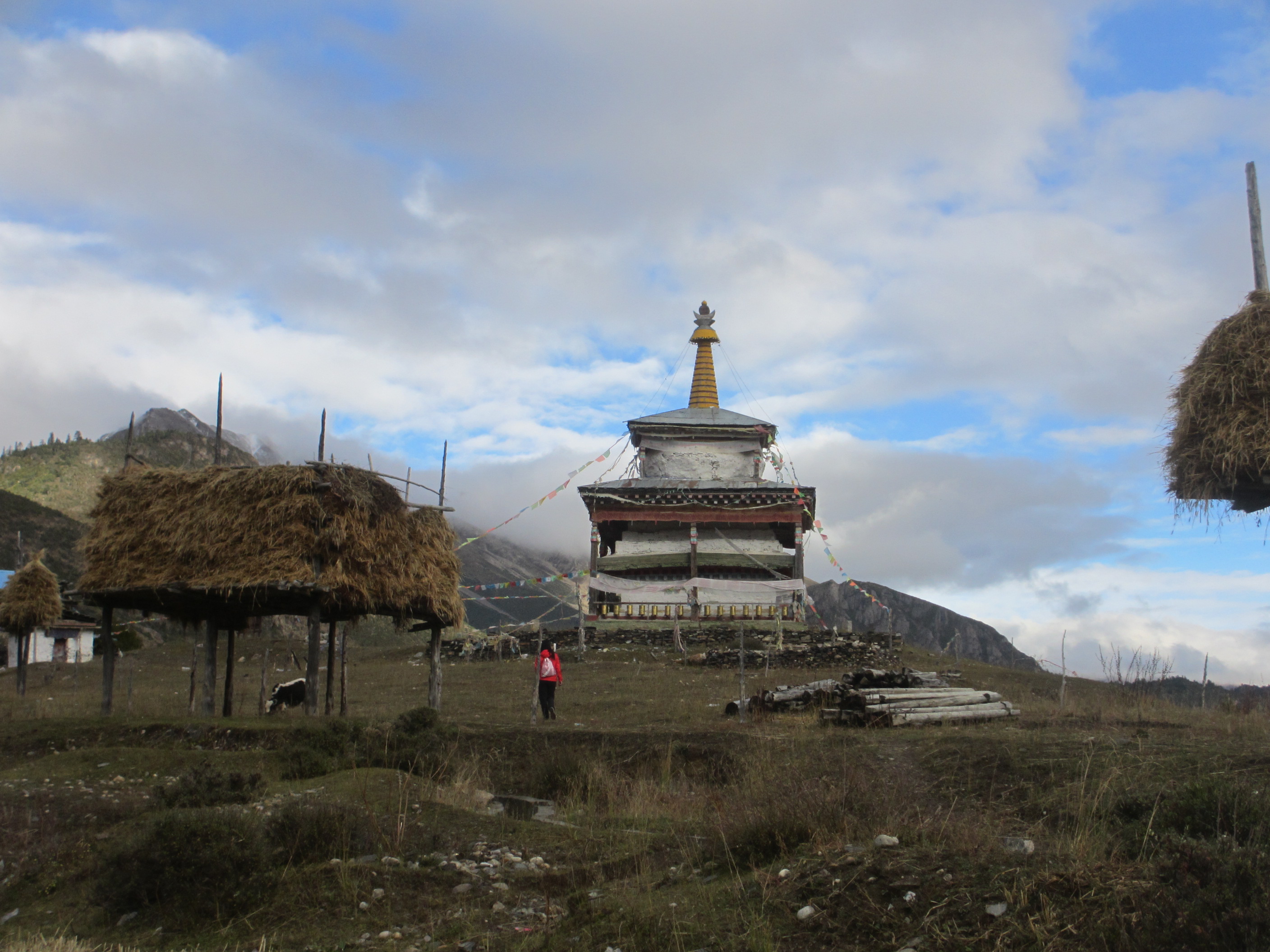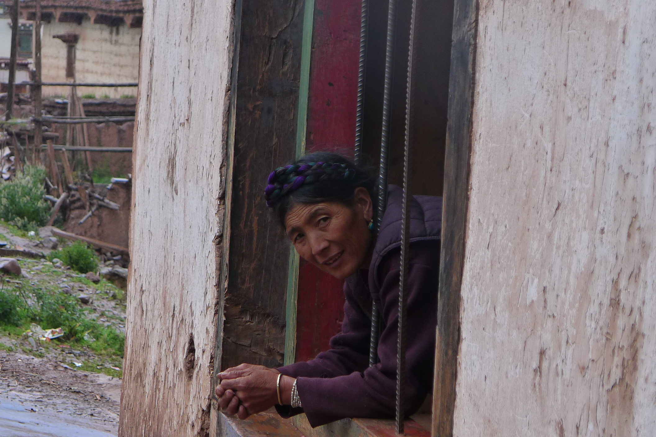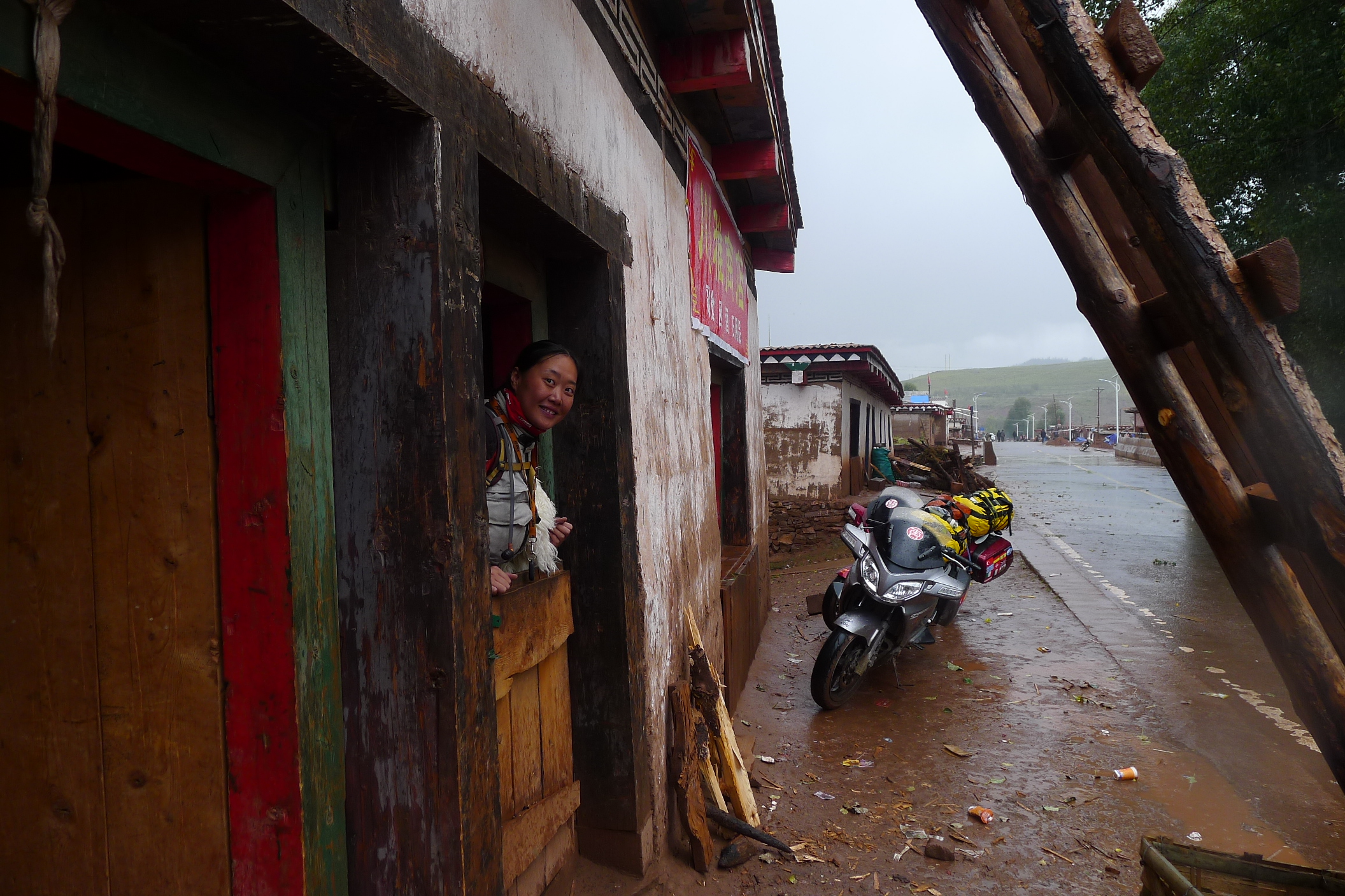Taking refuge in a local shop during a flash storm. The storm charged through the valley with lightening and thunder crashing around us and then disappeared as quickly as it came. We became all too aware how quickly the weather could change in the Himalayas and Tibetan Plateau.