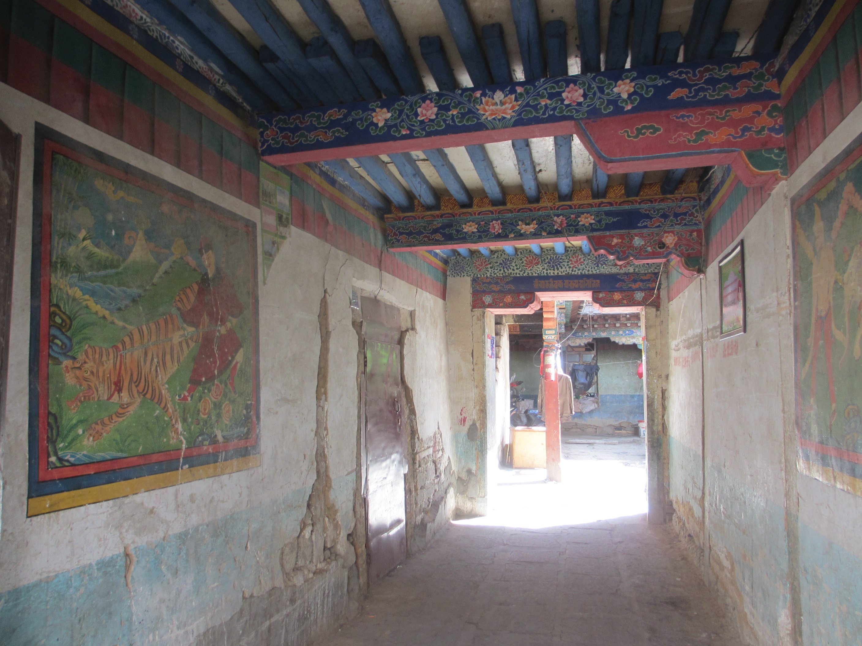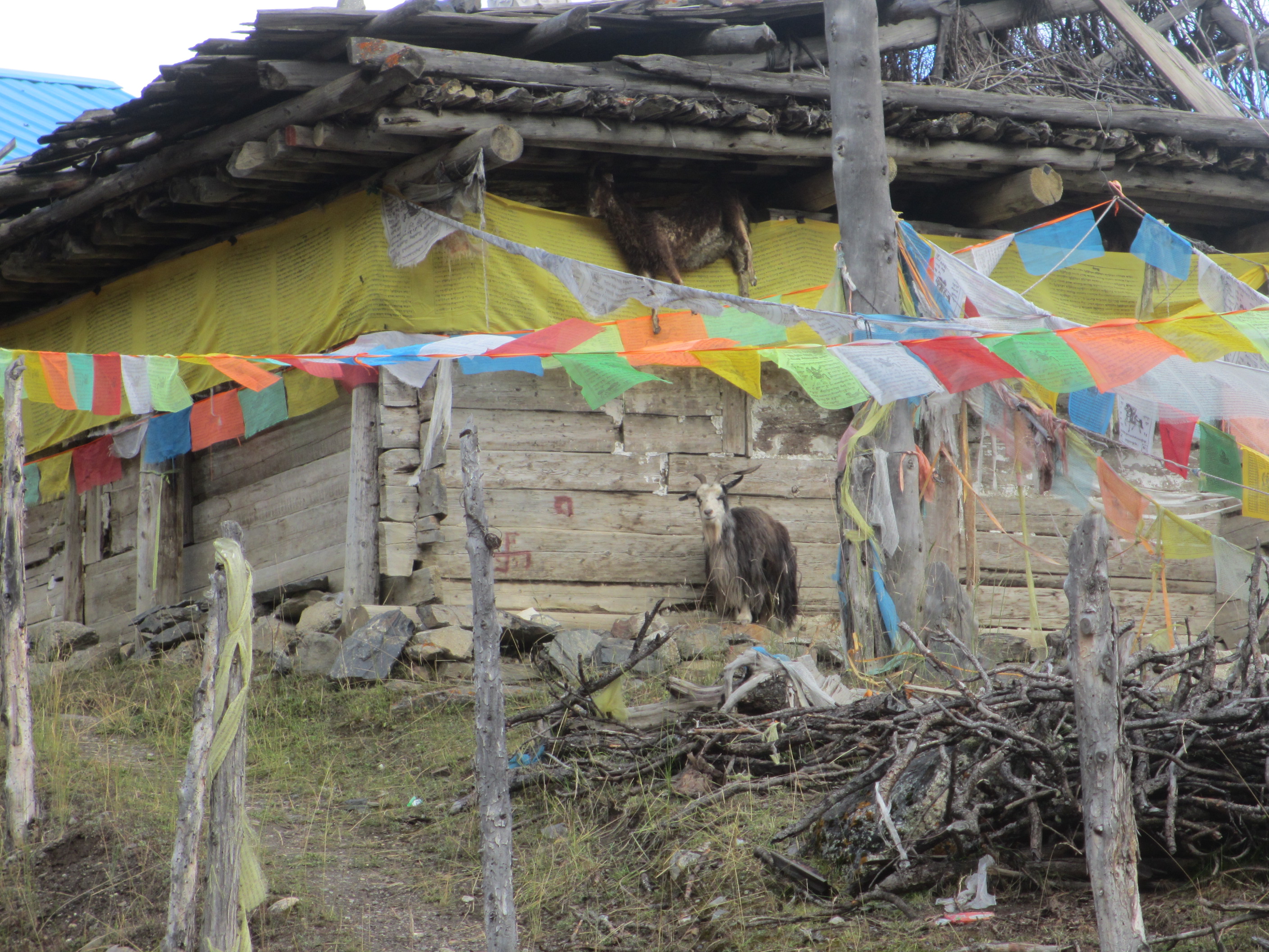 There is definitely a live goat at the bottom of this Tibetan building, but I am not sure about the other one up in the rafters!