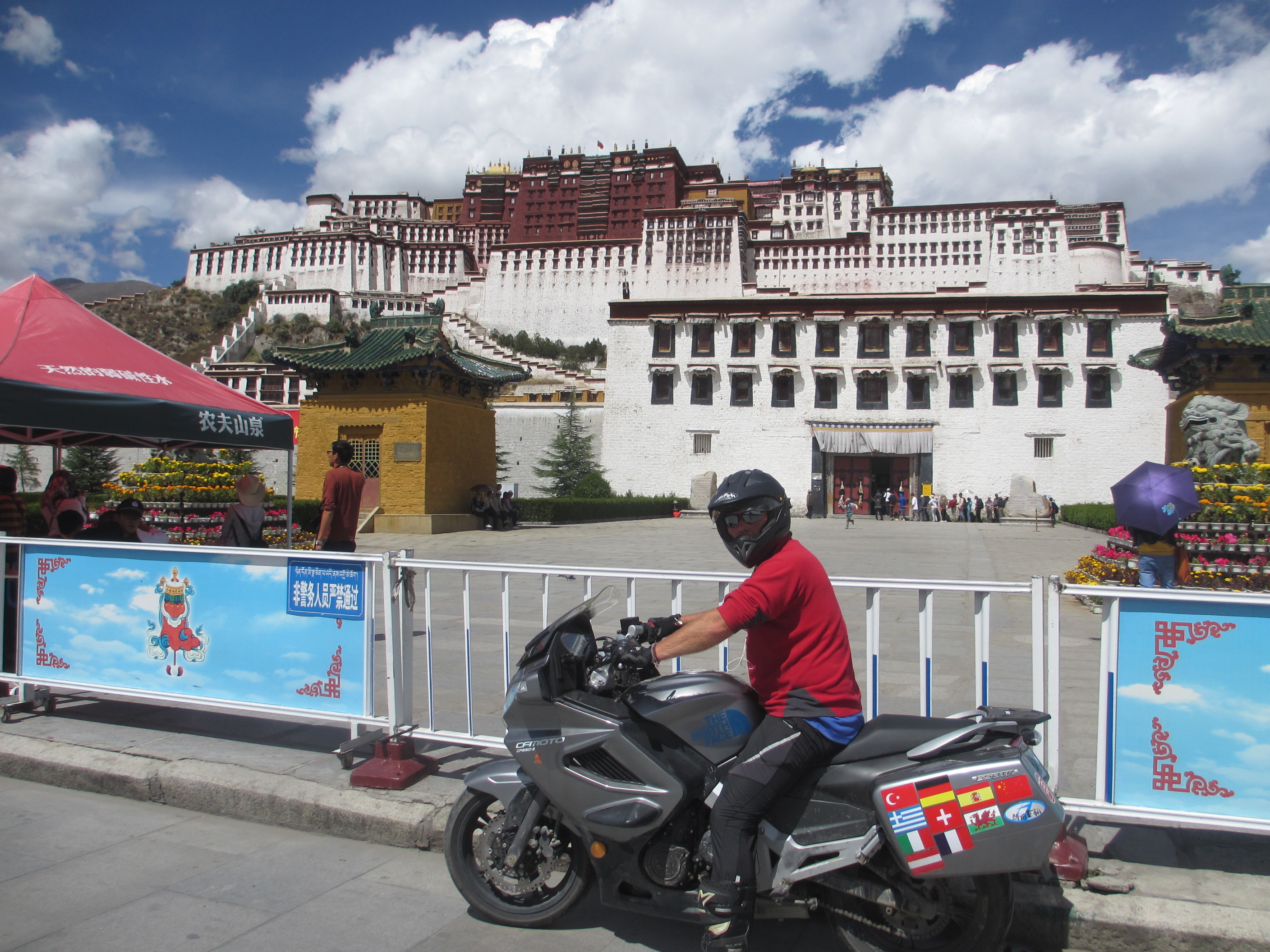 When we rode through Tibet (西藏) in September 2012, the People’s Republic of China was restricting access to Chinese citizens only. The only exception being that a “Tibet Travel Permit” might be granted to a foreign tour group, provided they all come from the same country, that their itinerary is organized and strictly supervised by an approved Chinese travel agency and they are accompanied by a guide at all times.