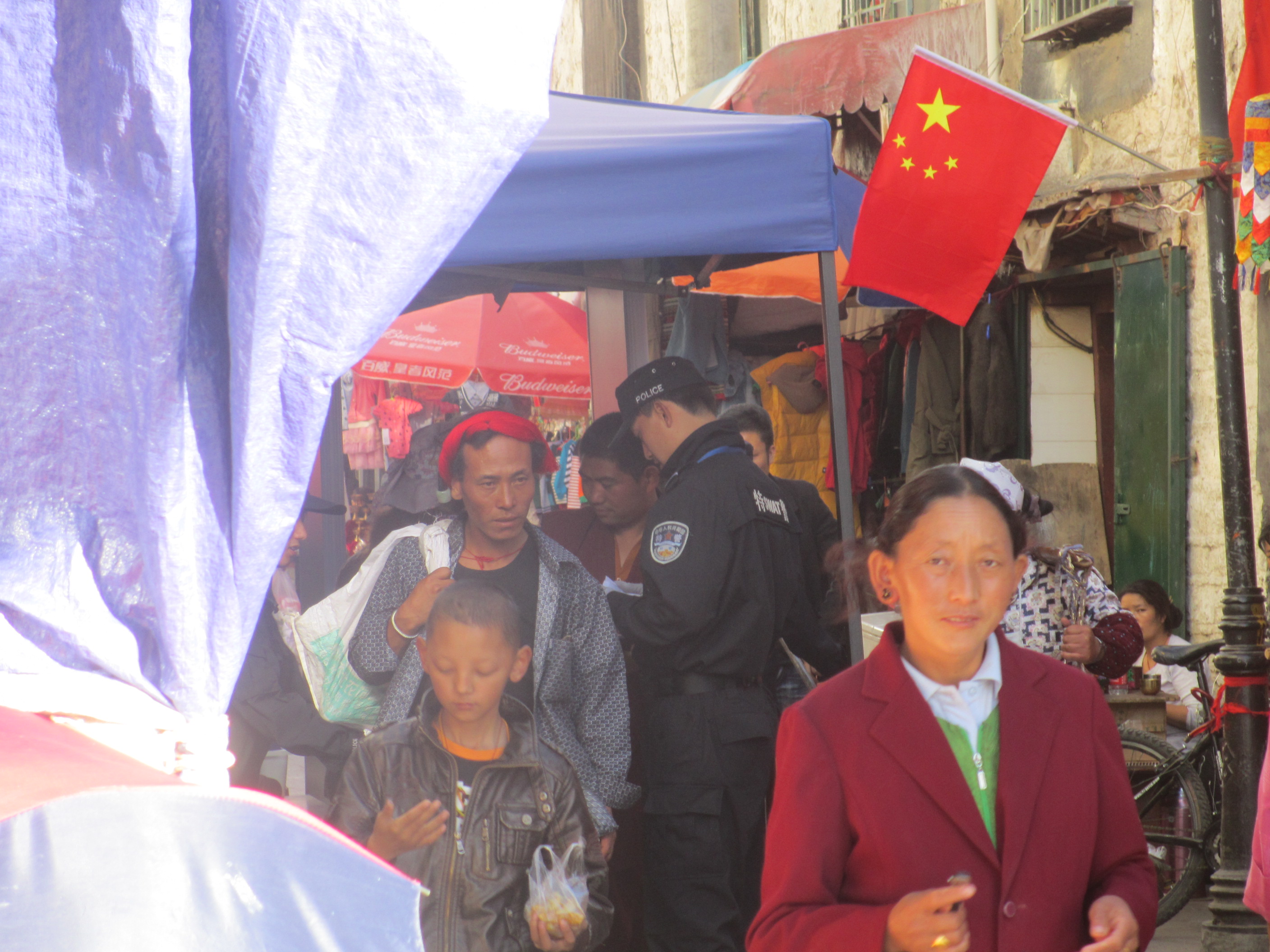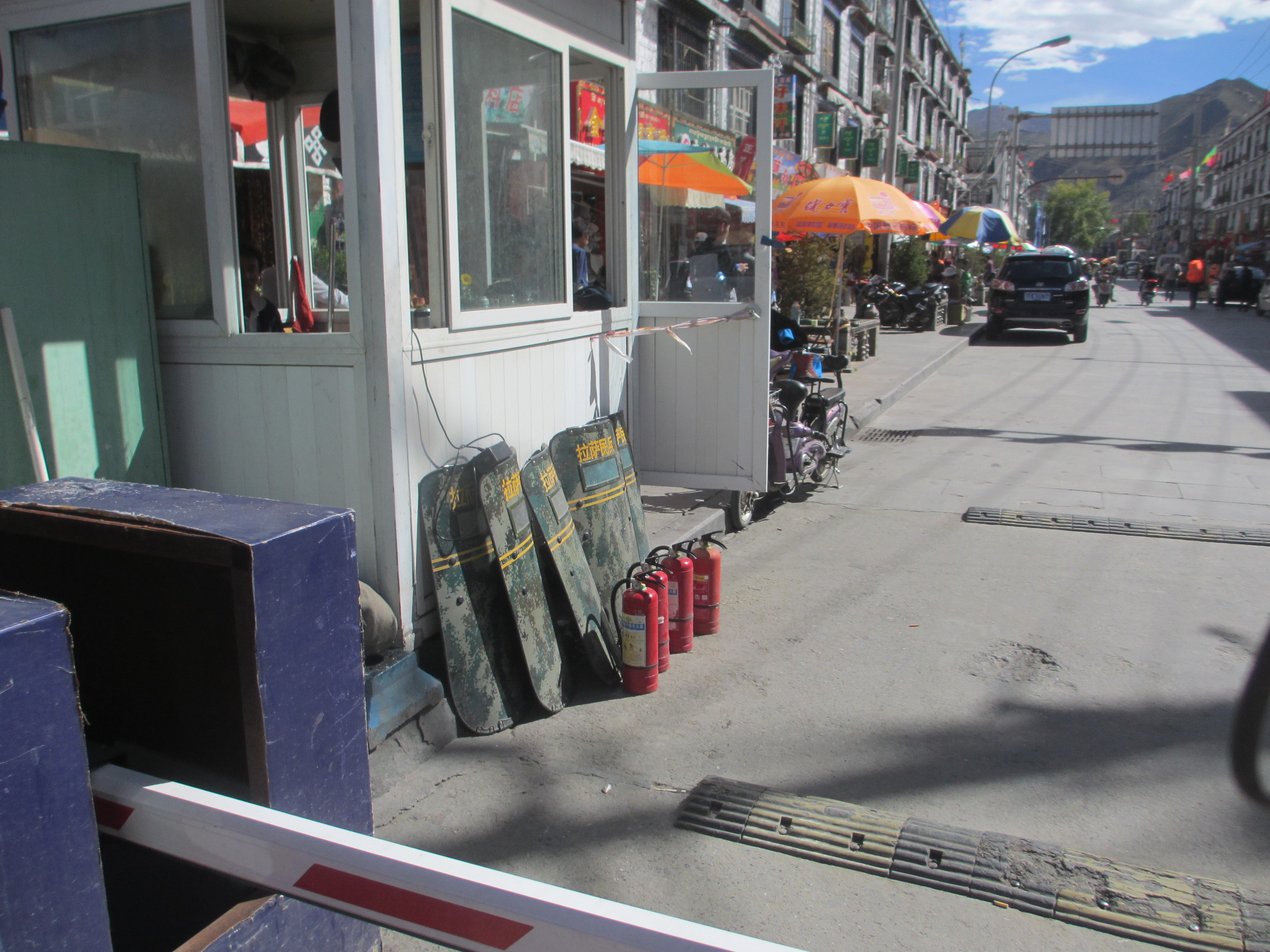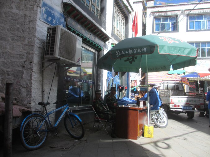 In addition to road blocks and security posts, garrisons and army barracks in every town and village in Tibet, there are police checkpoints on every street corner in Lhasa and Tibetans, particularly Buddhist lamas, are constantly stopped and searched. Whilst spending an afternoon with our friend Si Ba, I noticed he was constantly stopped and frisked by Chinese authorities.