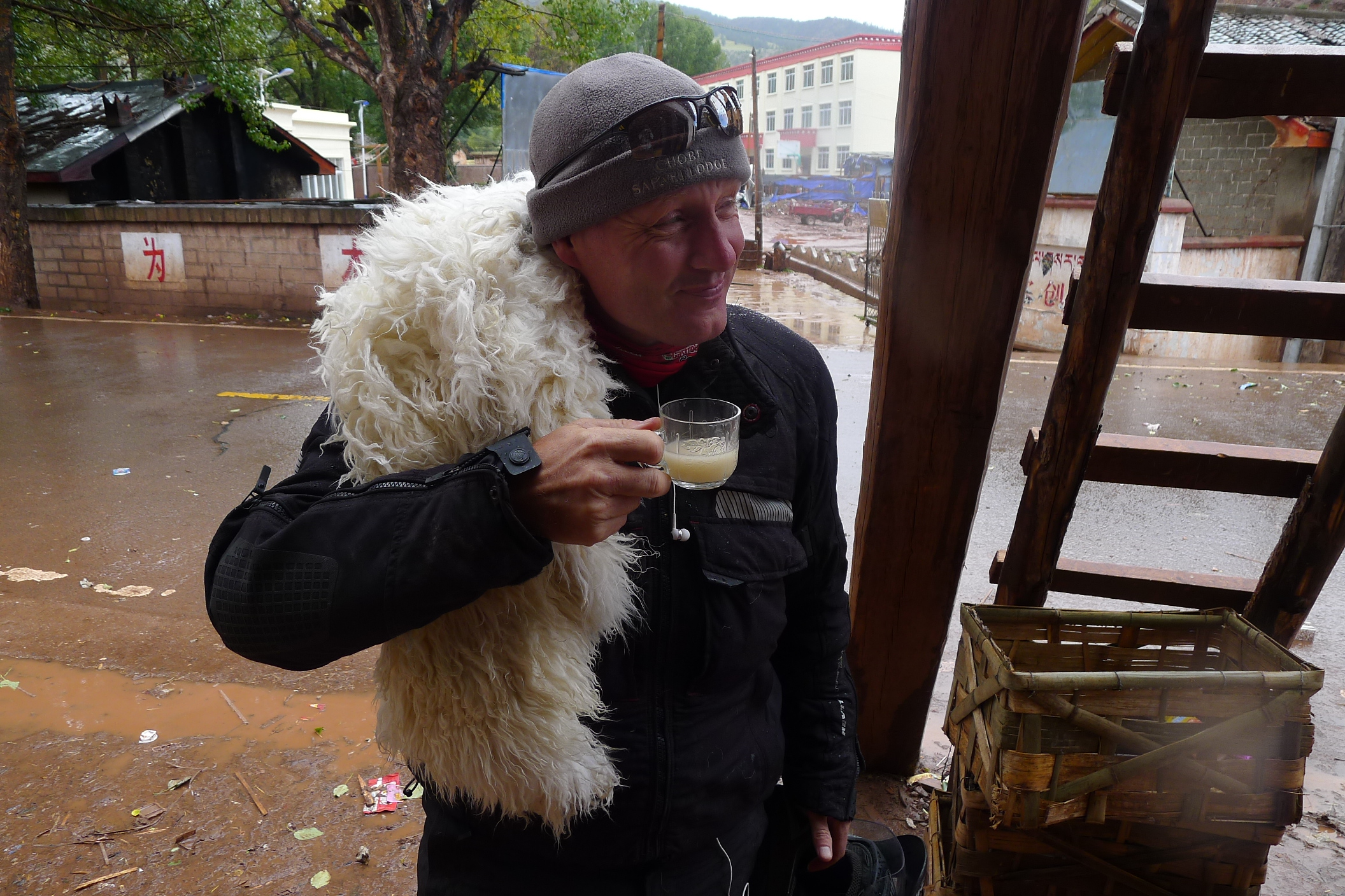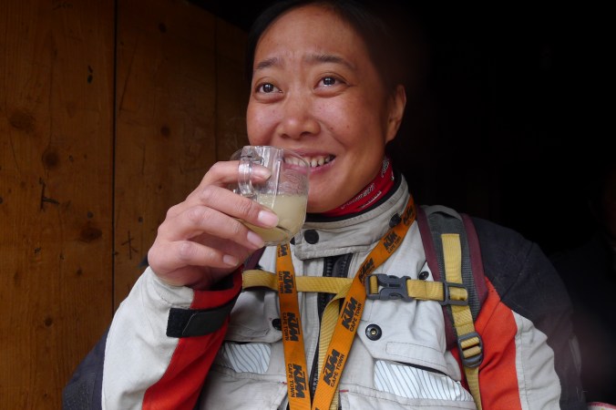 Yaks milk tea …. takes a little getting used to. Not sure what smelt more lively.. my wet sheep skin seat cover or the tea.