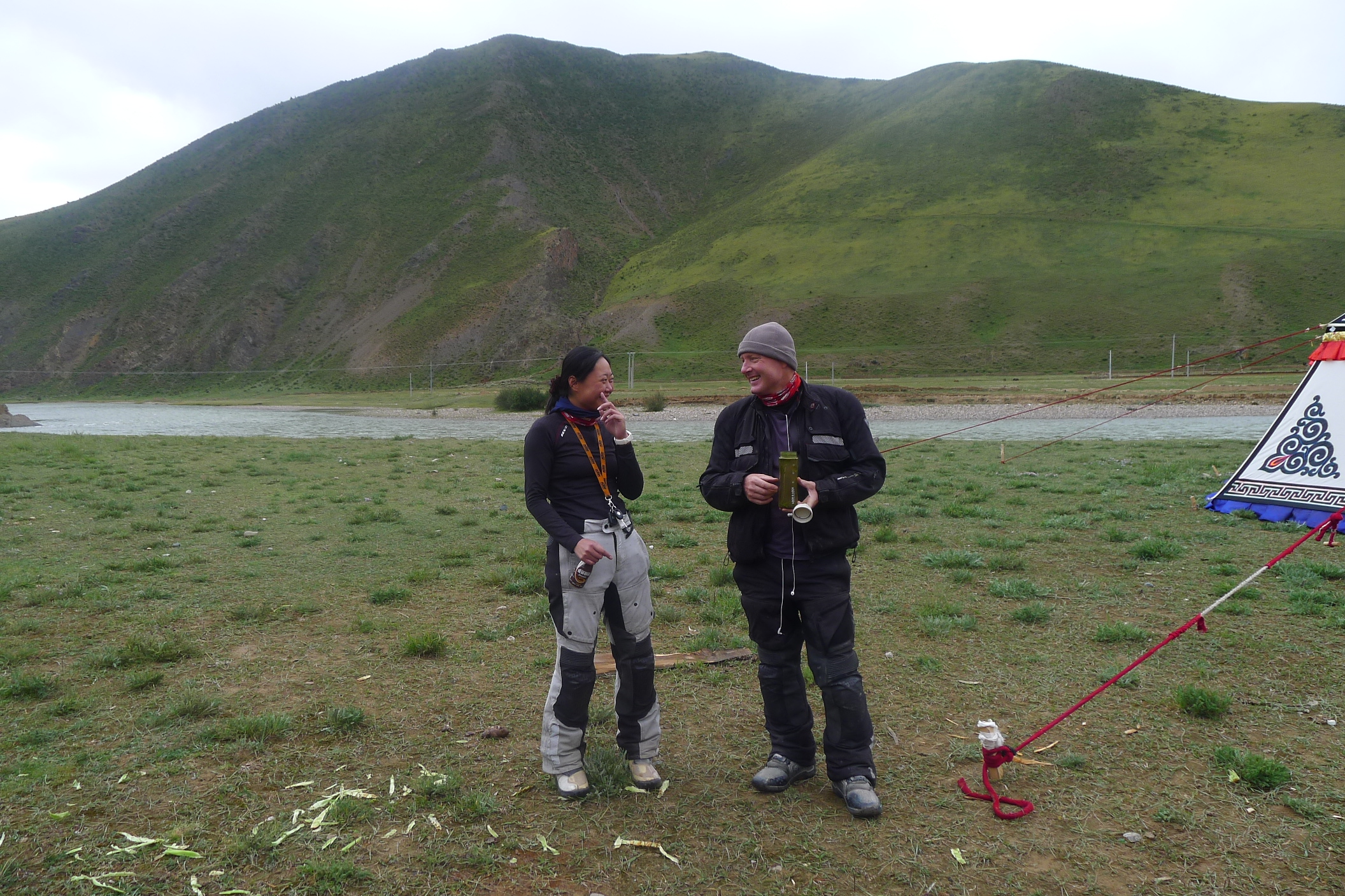 There were lots of semi wild, huge and woolly Tibetan dogs. During the night the temperature plummeted to minus 15 degrees and so the dogs slept right outside our tents pressed up against us… keeping us both a bit warmer.