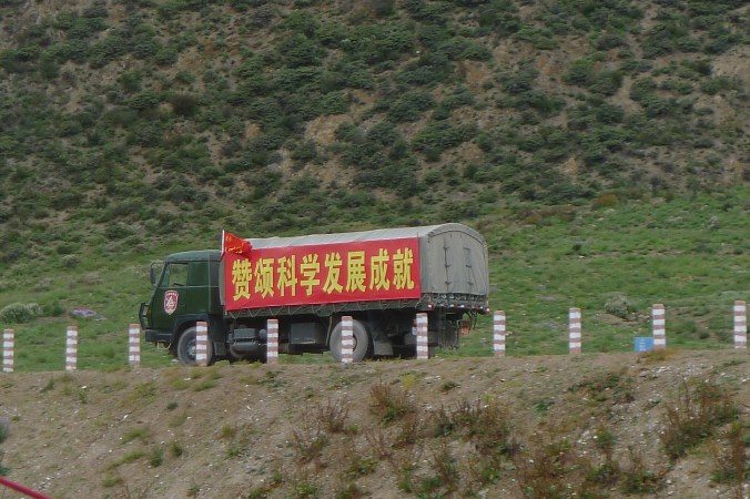 We were constantly reminded of the Chinese influence in Tibet by the new middle class Chinese exploring the mountainous province in their Hi-Tech 4x4s, the young cyclists performing the Kunming to Lhasa right of passage, and more acutely by the extremely long military supply convoys that sometimes consisted of a hundred army trucks heading back and forth to Lhasa. These convoys are often used in propaganda films as they evoke images and impressions of “Long March” heroics.