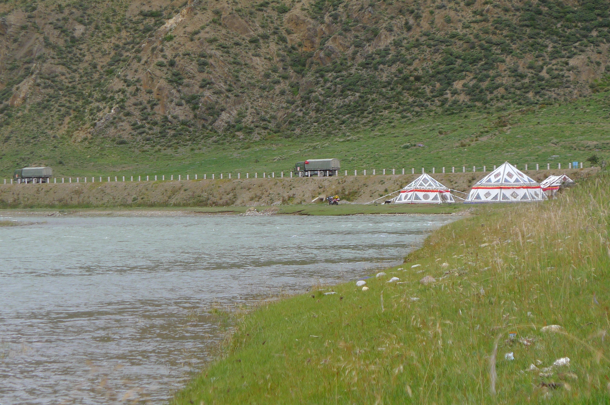 The Chinese side of Ran Wu …. nearly every small village and town in Tibet has a Chinese garrison regardless of how pristine or historically relevant the place may be. There are thousands of uniformed and plain clothed security police, army and often huge barracks for the military supplies conveys. Invariably ugly, intrusive and looking like an unfinished construction site. No National Trust in Tibet, nor any architects apparently. Rubbish and sewage strewn everywhere. Nearly every Chinese person we saw just throws rubbish straight into the lakes and streams or throws them out the windows of their vehicles onto the hillside. Everything is slovenly…..and with no respect for the environment, nor with any real respect for the indigenous people. The Chinese government needs to start acting responsibly.