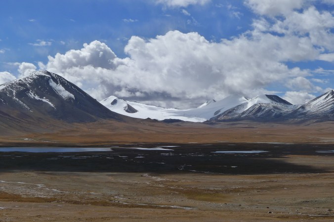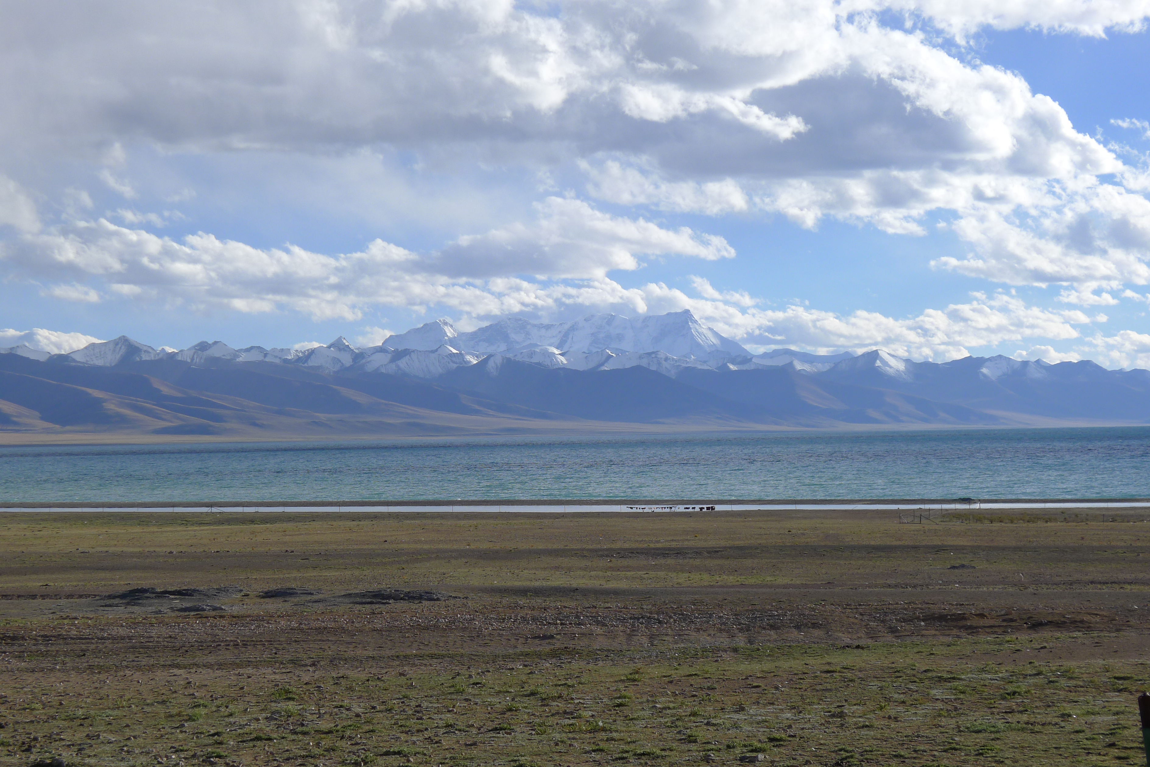 Camping next to sacred Nam Tso Lake at 4,900 meters. The mountain in background is Yan Qing Tang Gu La at 7,800 meters. There is a local saying that when you are here you never think of home.