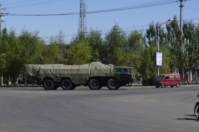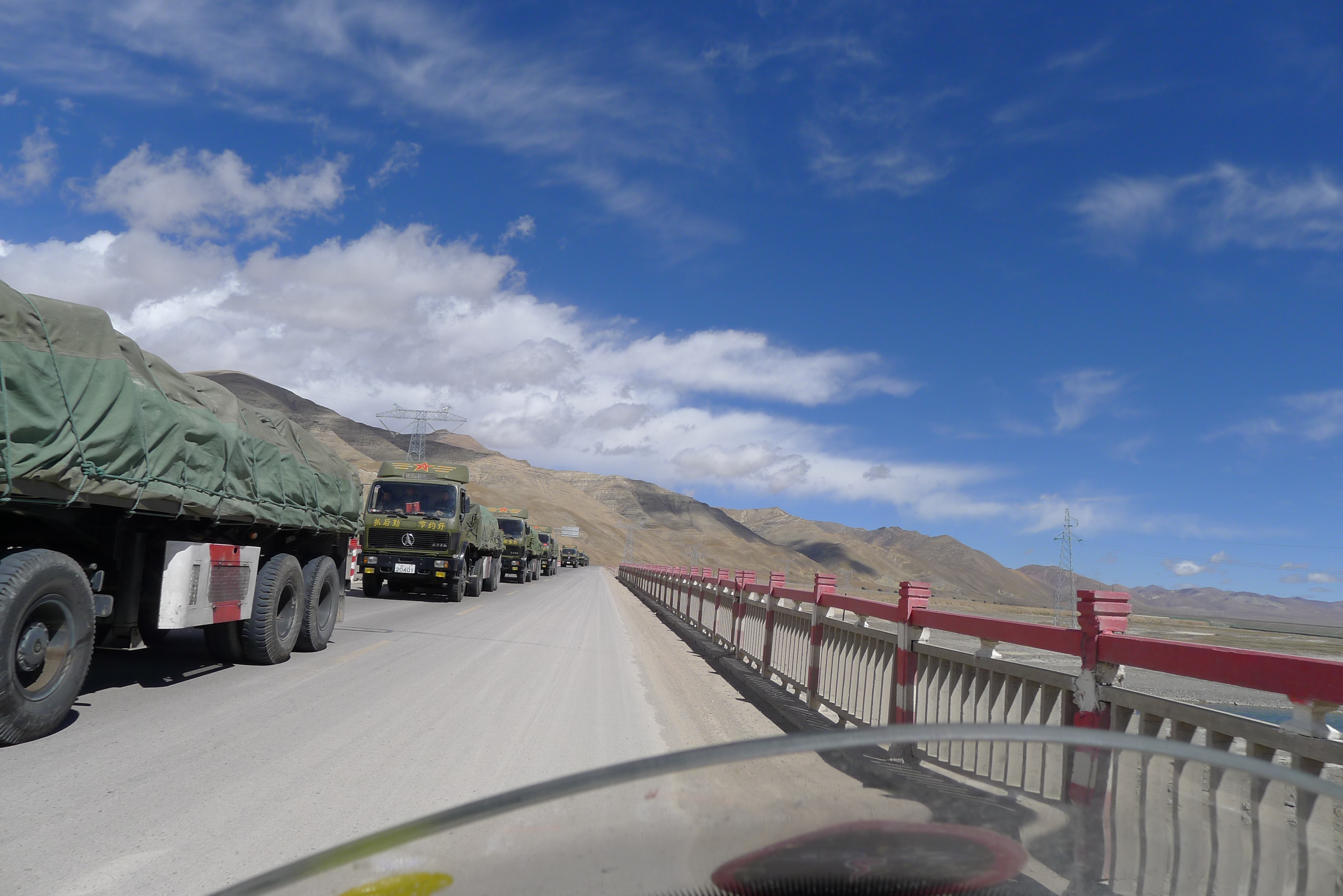 The route between Tibet and Xinjiang, and also Tibet and Sichuan is particularly tough and challenging, hence the off road capabilities of the military vehicles, such as this 8 wheeled monster truck