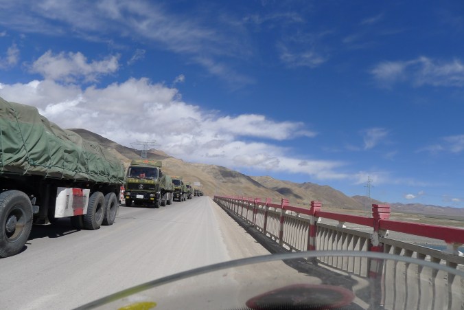 Sixty years ago the region would have been incredibly remote and Ge’ermu would just have been a small village that enjoyed the milder climate of the valley and had year round access to water. Now it was like many new towns in China…. architecturally dull, dusty, crowded, polluted, and in the case of Ge’ermu full of military personnel, their vehicles, equipment and compounds.