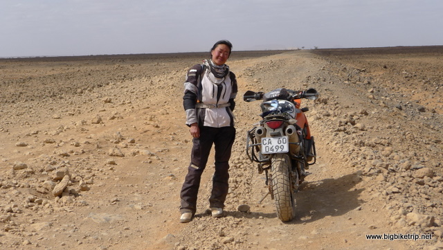 Fanny and her KTM in north Kenya …. tough, barren and hard roads on way to Moyale in Ethiopia