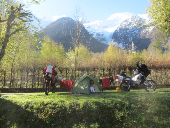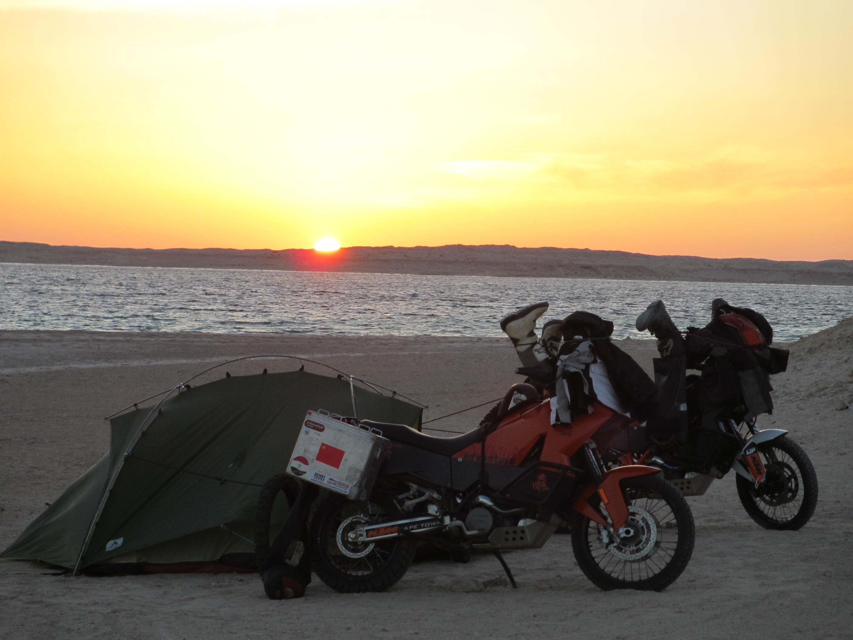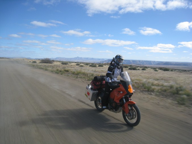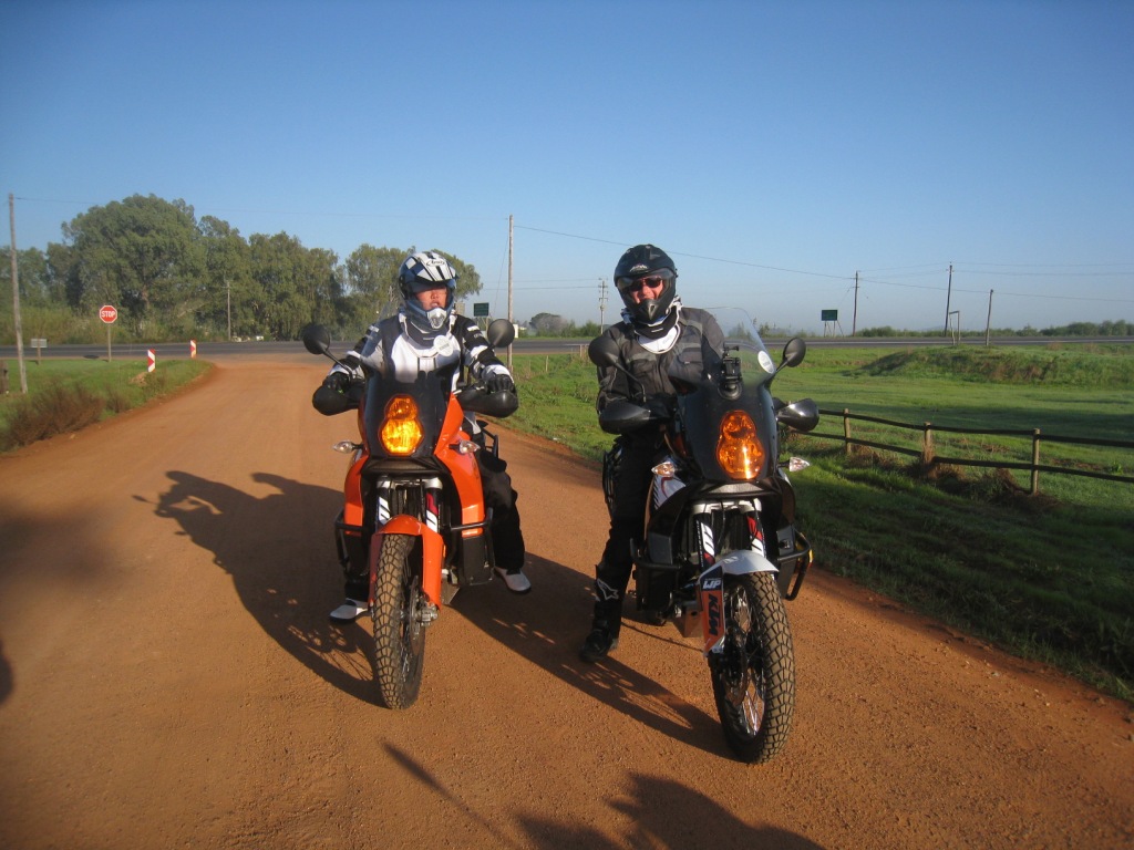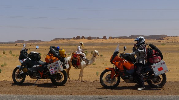 • If I were you I would get a new or nearly new KTM 1190 Adventure R version. Although the 990 A is going to be iconic, the new bike ticks all the boxes, has better range, and you can change traction, and suspension settings at the press of of button which is important. If you really want a 990 then read our “Bikes and Equipment” page on this blog, and also preparations post earlier on in trip where we describe how we got bikes set up. My bike was a new one and needed running in and Fanny’s was a much cheaper 2008 model that actually had no real problems at all because we did a good service and setup was performed before we set out (clutch parts, chain sprocket). Maintenance of bike along the way and fuel going in tank is very important. We met guys along our travels who bought cheap bikes (old BMW 650s for instance), but in the end they spent lots of cash and got seriously delayed in the places you least want to get delayed (which can really mess up carne and visa issues). Good luck and send us your posts and pics…. Oh, and if you haven’t done already .. learn how to ride a big bike on mud and sand…