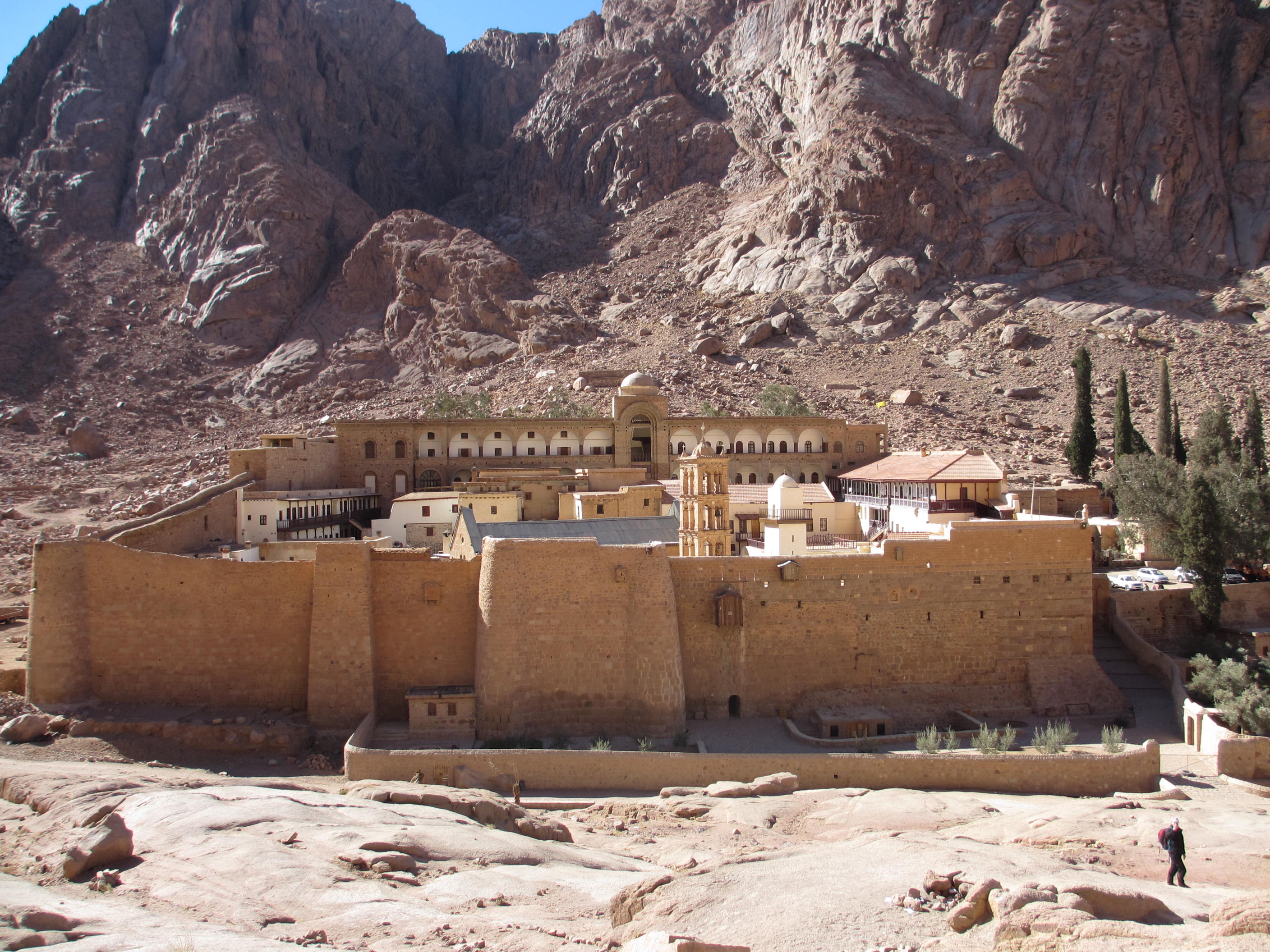 St Catherine’s Monastery, Sinai, Egypt. Mount Moses behind…. Andrew Durant in foreground.