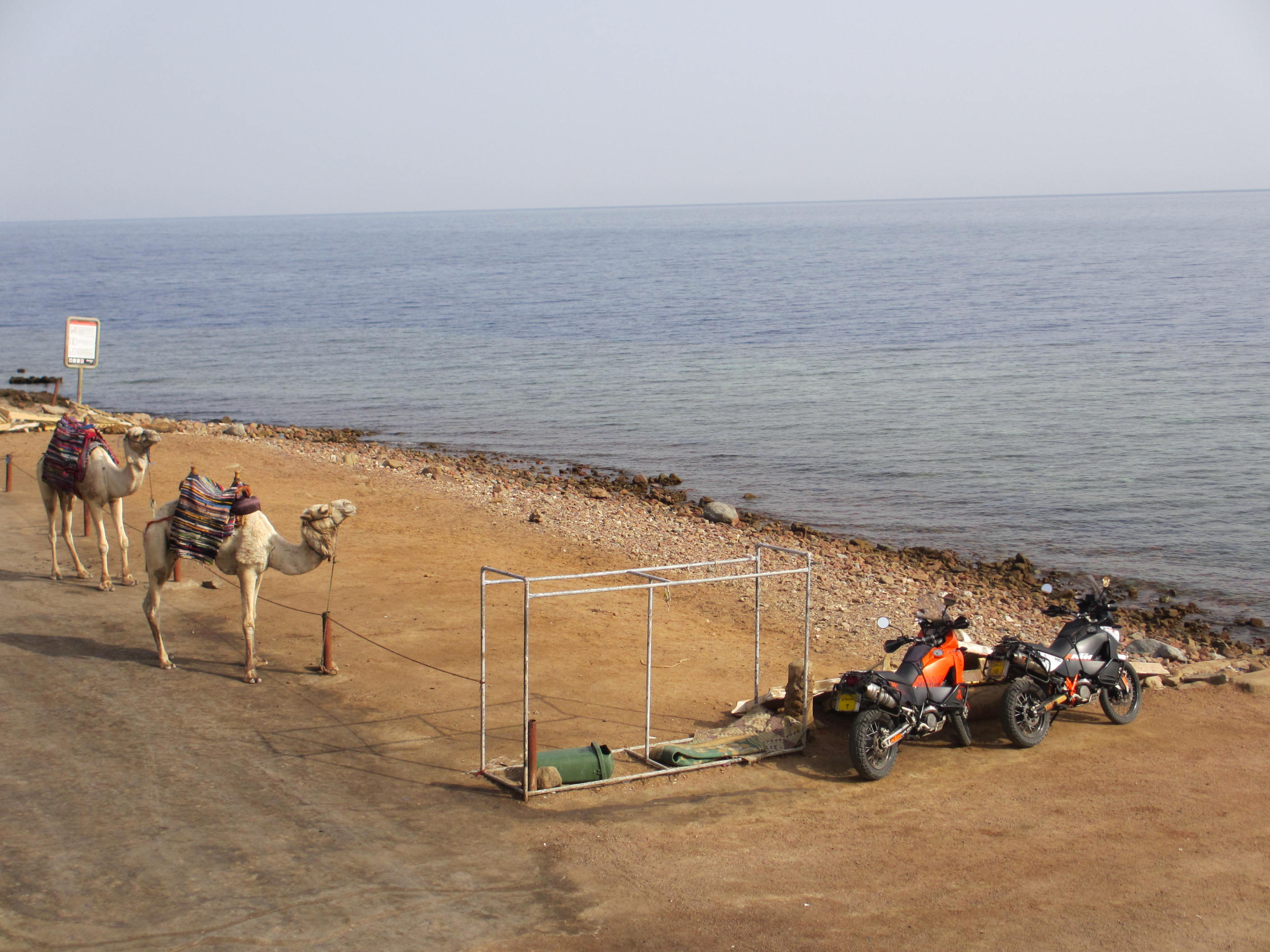 Diving at Blue Hole, Canyons, near Dahab, Red Sea, Egypt. Bike parked up with their Egyptian cousins.