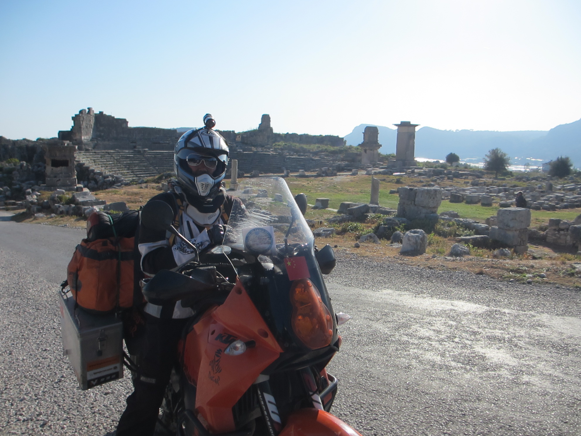 Fanny and her KTM having crossed Africa, Middle East and Europe.