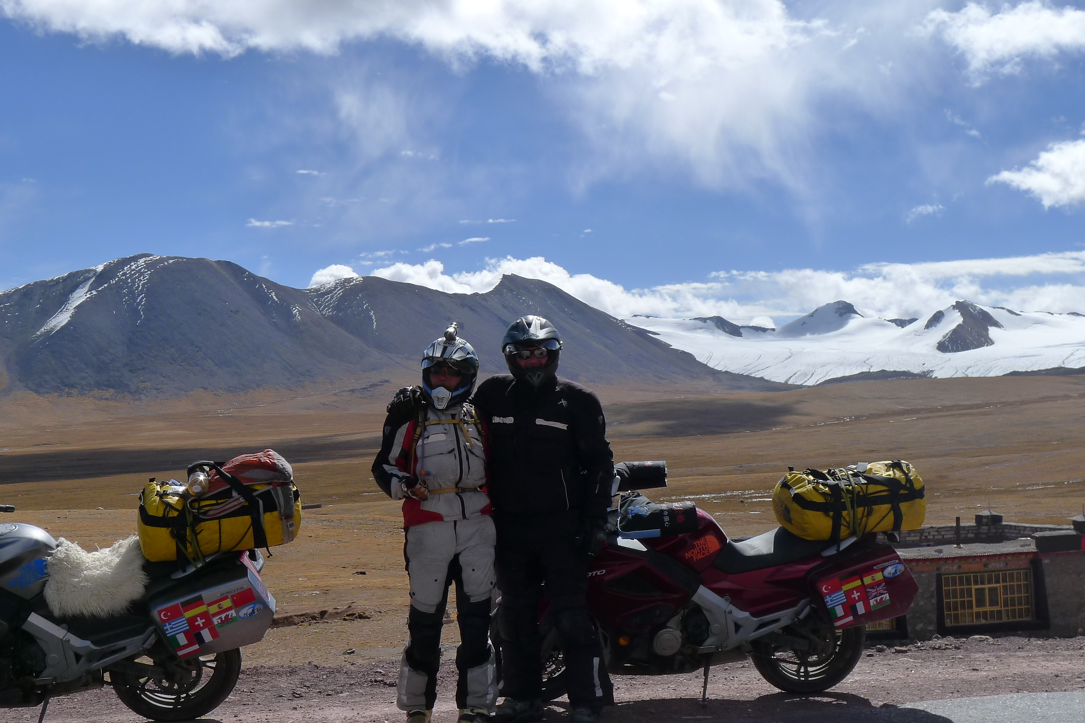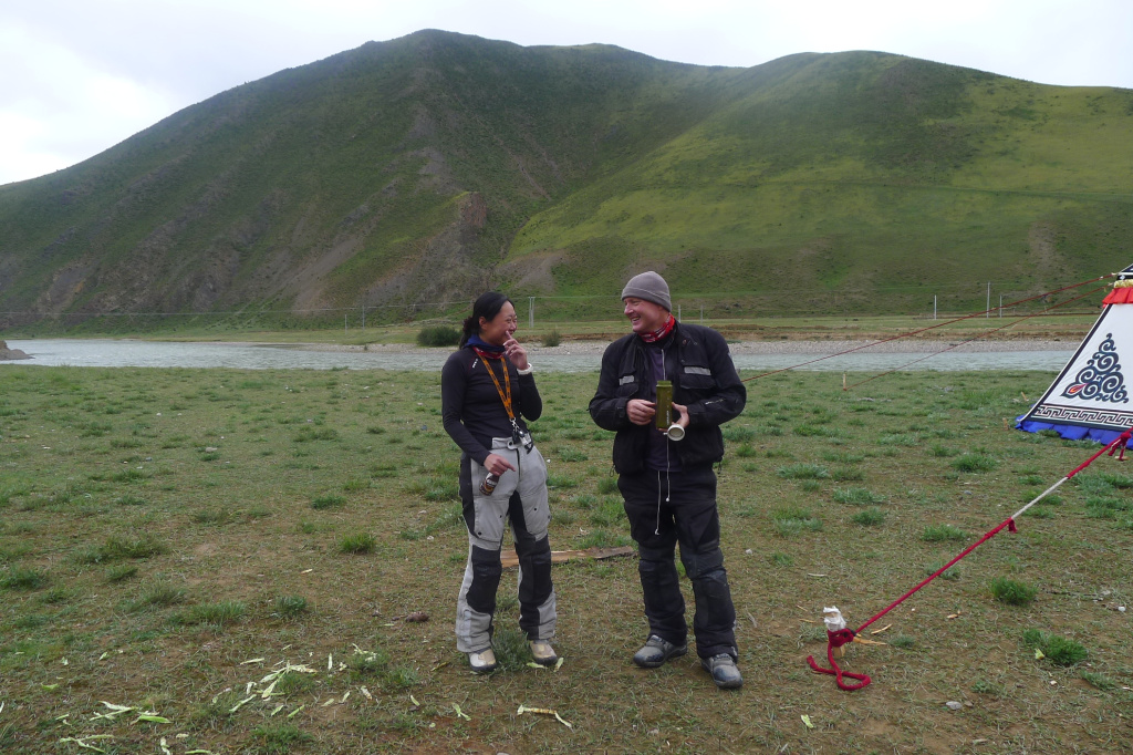 Rupert & Fanny. Still smiling after 20 months of riding our motorcycles around the world. (Tibet)